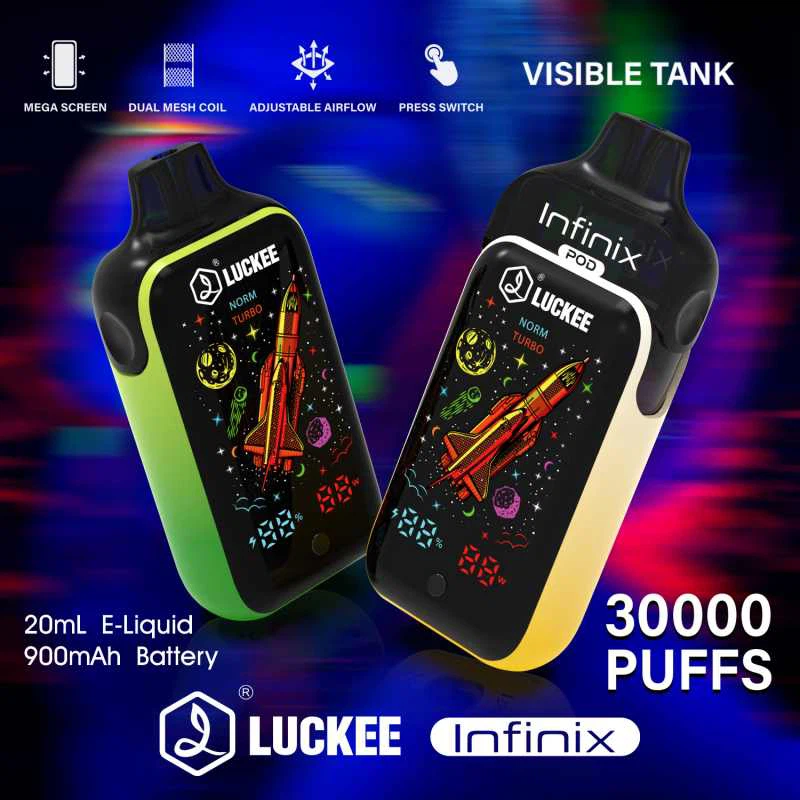 PARAMETERS Puff:Up to 30000 puffs Liquid:20 mL Pre-filled Battery:900mAh Rechargeable type-c port Core:Dual Mesh coil 1.2 Ω Design:3D full screen,Removable battery,Airflow Control Charging port:Type-c Flavors:15 flavors Weight:120 g/piece