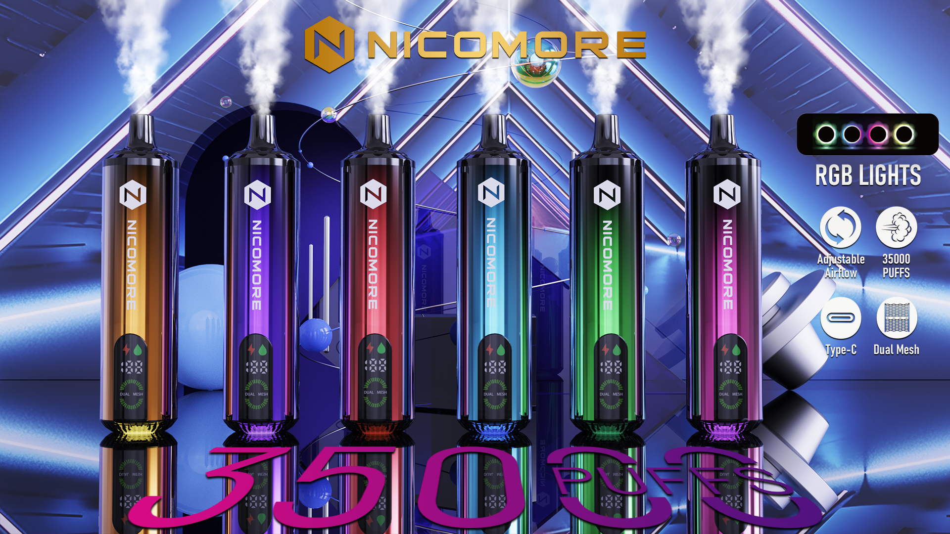 PARAMETERS Puff: 35000PUFFS Nicotine:2% Battery:850MAH Charging port:Tyep-c Design:AIRFLOW ADJUSTABLE Weight: 115g/piece
