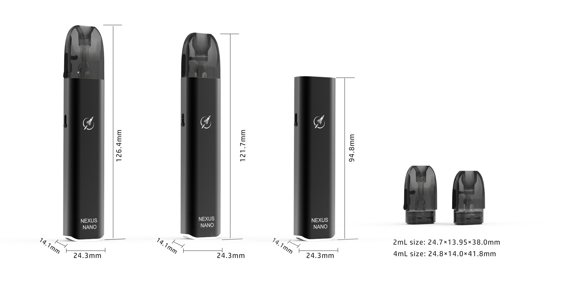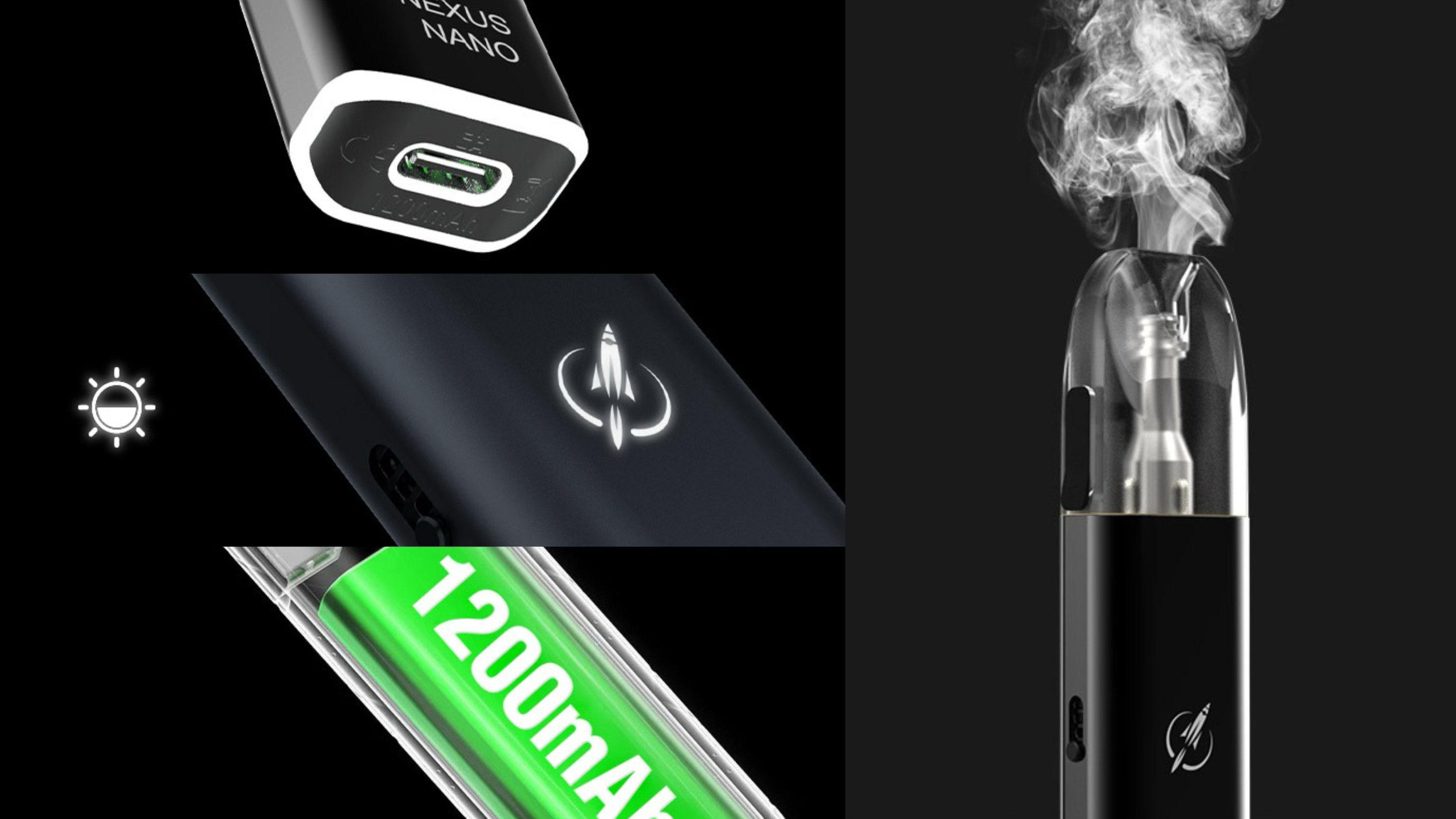 PARAMETERS Liquid: 4mL Pre-filled Core: Mesh coil 0.6 Ω Battery: 1200 mAh Charging port: Type-C Adjustable airflow Weight: 46 g/piece
